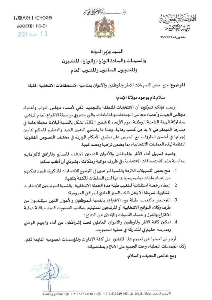 رئيس الحكومة يصدر منشورا بمناسبة الإستحقاقات الإنتخابية المقبلة