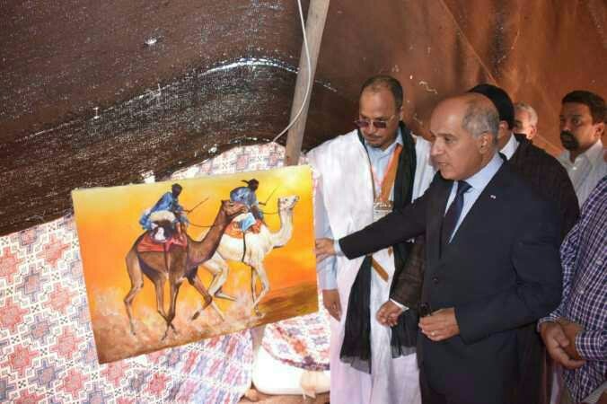 ولدى وصوله الى الساحة المهرجان وجد في استقباله المنظمين وضيوف المهرجان القادمين من مختلف الدول العربية، كما قدمت له شروحات مفصلة حول السباق ، و قام بزيارة الخيام الموضوعاتية، وشهد حفل الافتتاح استعراض الإبل و لوحات فنية تراثية إلى جانب أغاني حسانية قدمها الفنان باعية محمد و مجموعة العيساوي والفنان كبارة ،و أطلقت الإشارة الرسمية لحفل الافتتاح الرسمي للمهرجان ، تم كلمة ترحيبية بضيوف المهرجان، من قبل عامل الإقليم ورئيس الإتحاد العربي للهجن مدير المهرجان، مؤكداً على الاهتمام الكبير من الدولة المغرب بالحفاظ على الموروث الثقافي وعلى الخصوص سباق الهجن