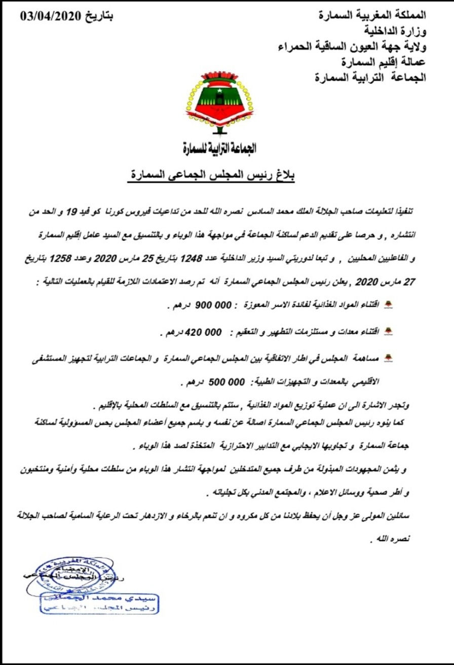 جماعة السمارة الترابية تخصص 90 مليون سنتيم للمساعدات الغذائية للأسر المعوزة بالسمارة