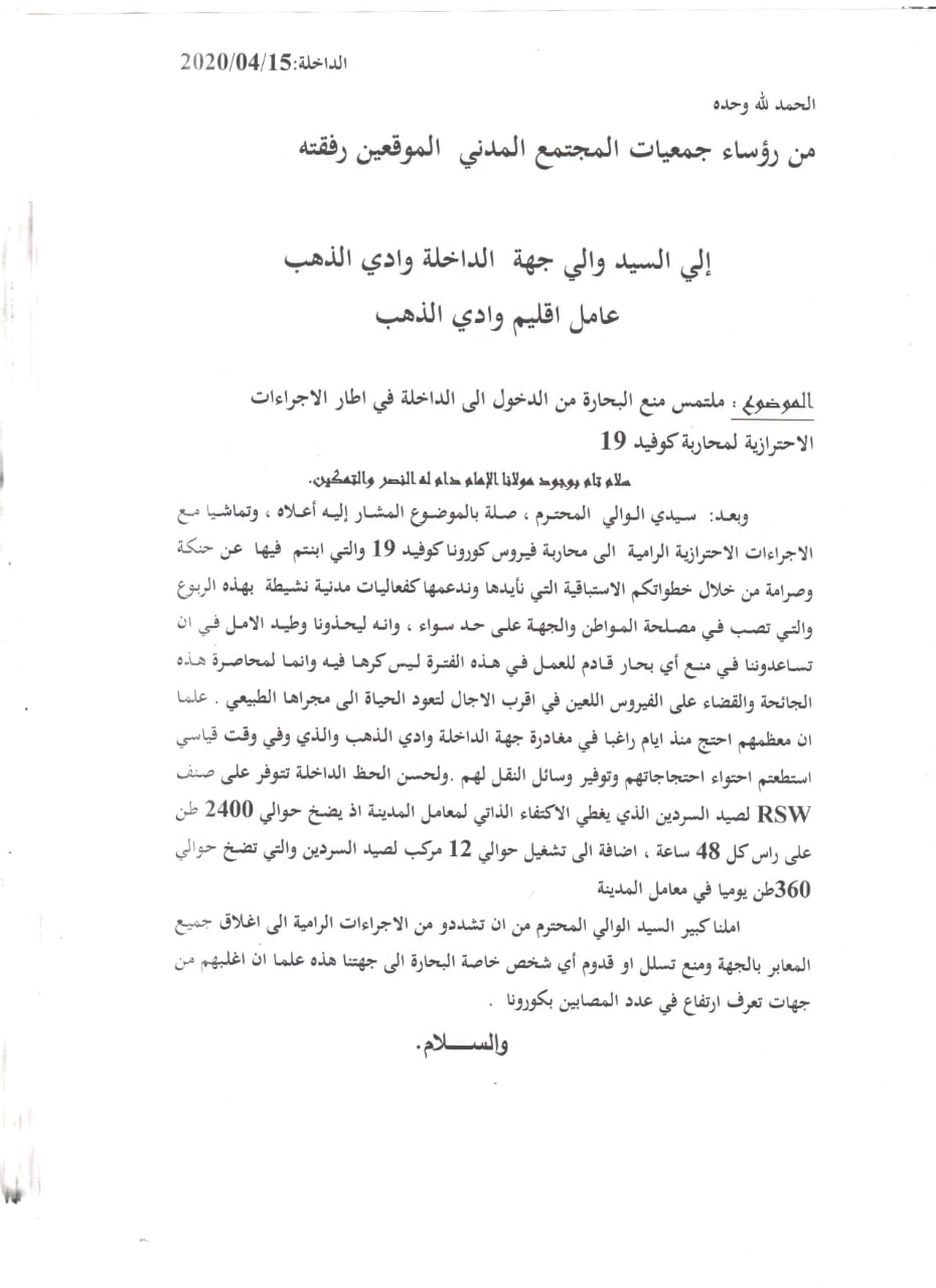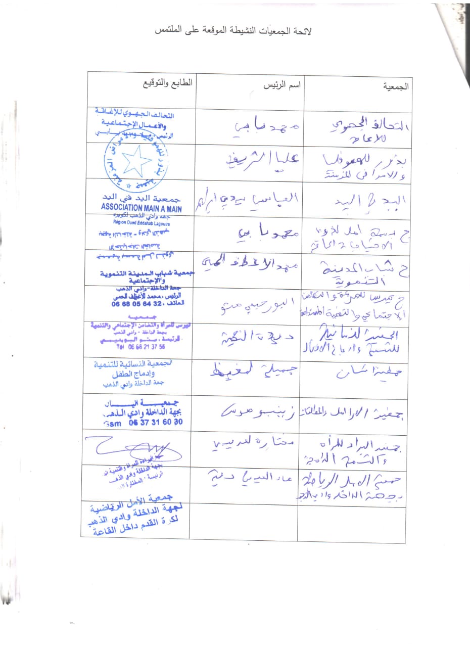 جمعيات المجتمع المدني بالداخلة تراسل والي الجهة بهذا الخصوص