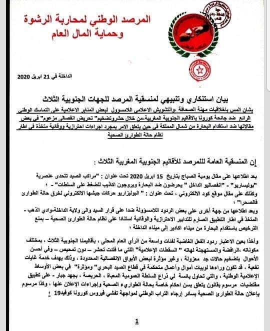 بلاغ…المرصد الوطني لمحاربة الرشوة و حماية المال العام يستنكر الحملة الاعلامية العنصرية لبعض الجرائد الصحفية