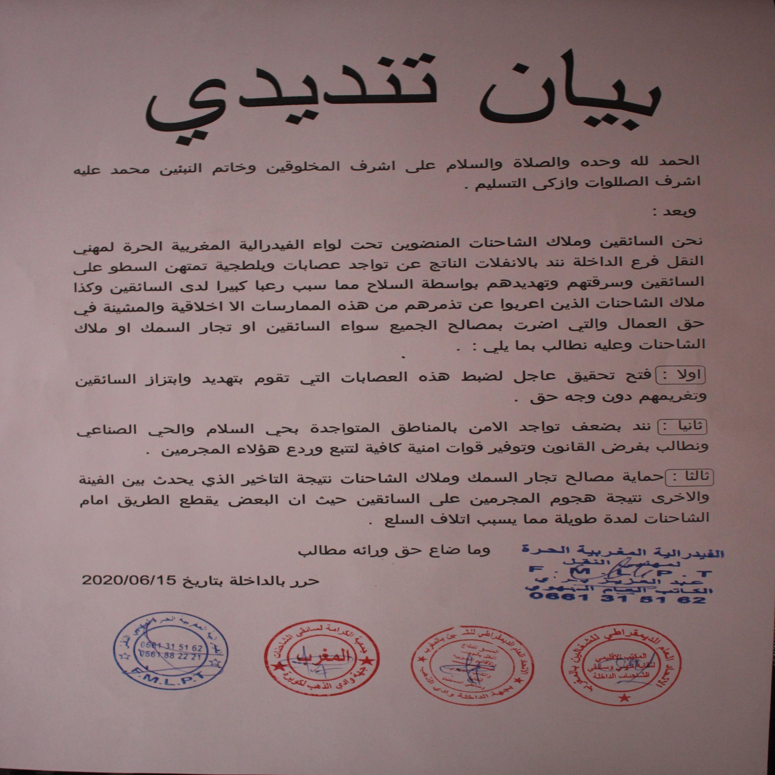 بيان تنديدي: لسائقين وملاك الشاحنات يشتكون من الإنفلات الأمني بالحي الصناعي