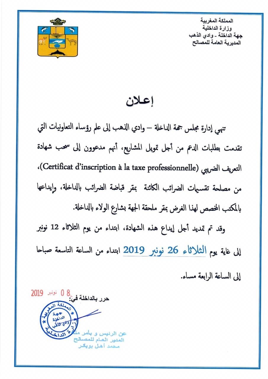 إعلان : تمديد أجل إيداع شهادة التعريف الضريبي للتعاونيات