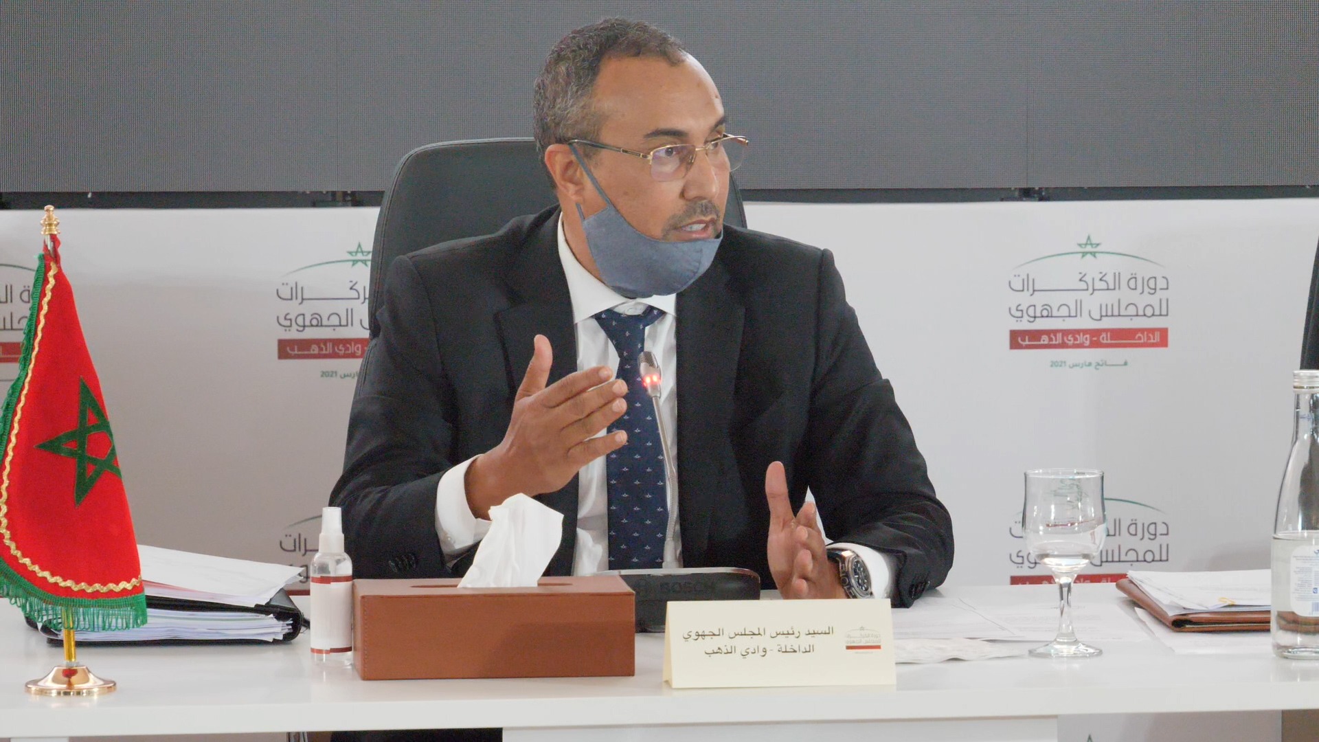 عقد مجلس جهة الداخلة-وادي الذهب، يوم أمس الاثنين فاتح مارس دورته العادية لشهر مارس، بالمعبر الحدودي بالكركرات، بحضور لامين بنعمر والي الجهة، إلى جانب عامل عمالة أوسرد، والخطاط ينجا رئيس الجهة .
